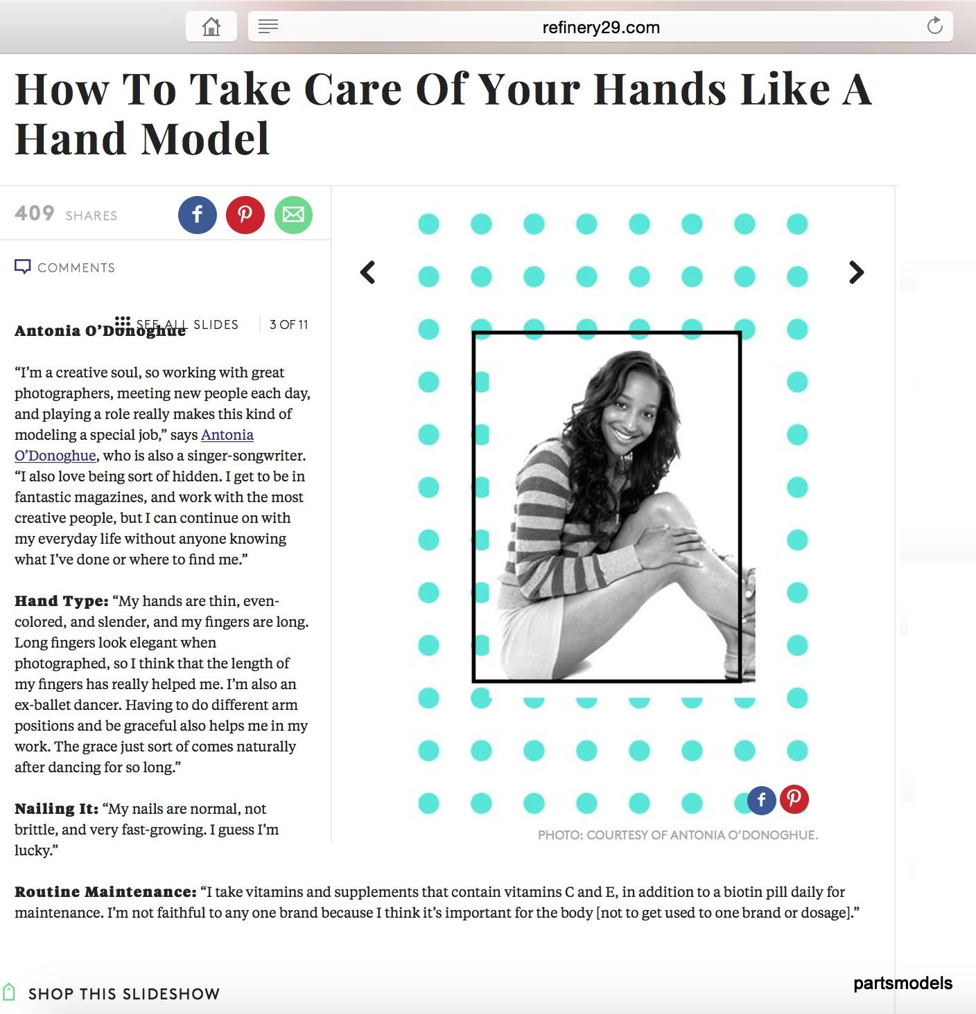 Height 5'5" / Dress 2–4 / Bust 34C / Waist 25" / Hip 32" / Shoe 9.5 / Glove 7.5 / Ring 5.25
