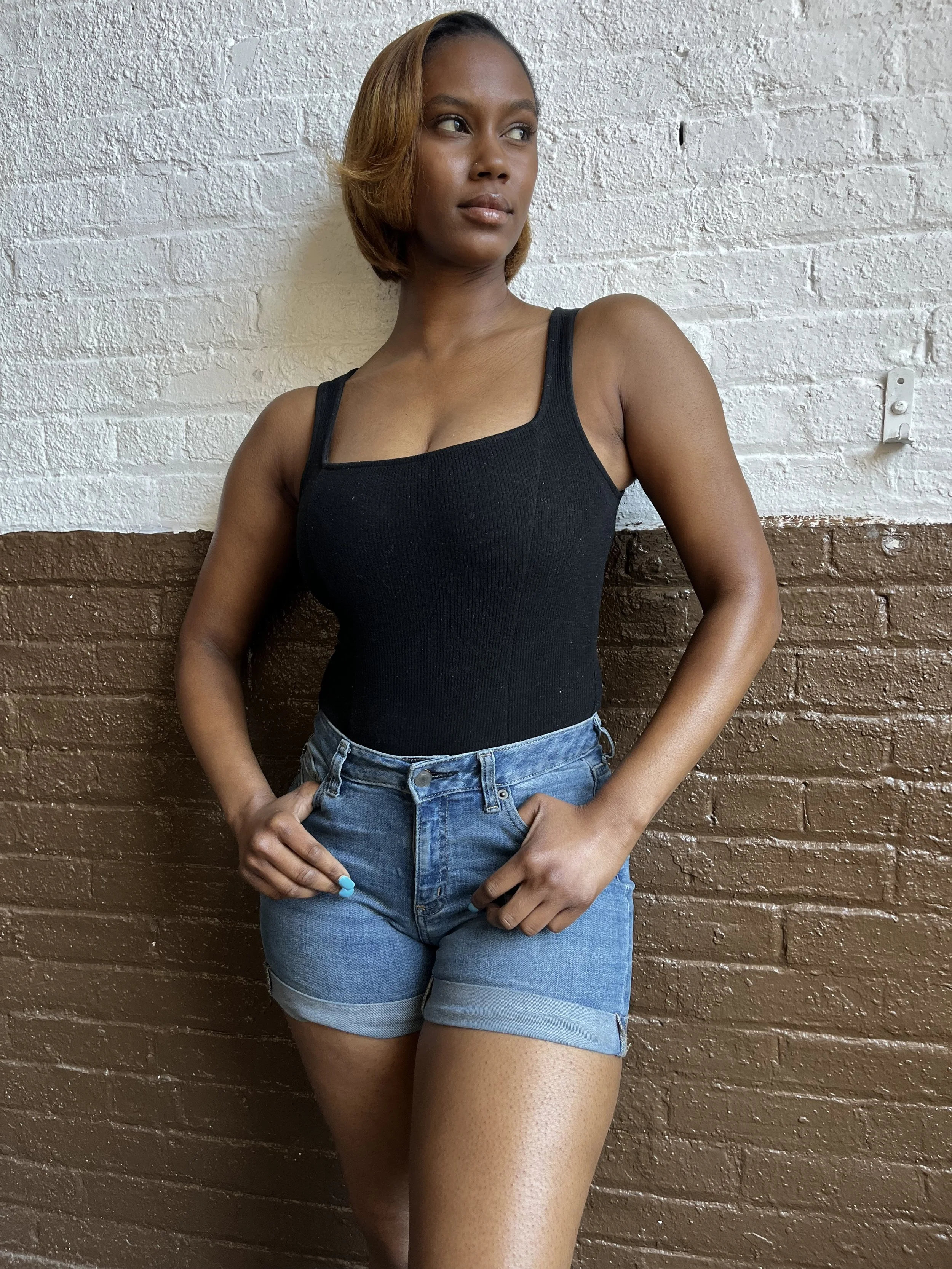Height 5'8" / Bust 34'“ / Waist 25" / Hip 37" / Shoe 8.5 US / Tattoos (back shoulder) / nose Piercing
