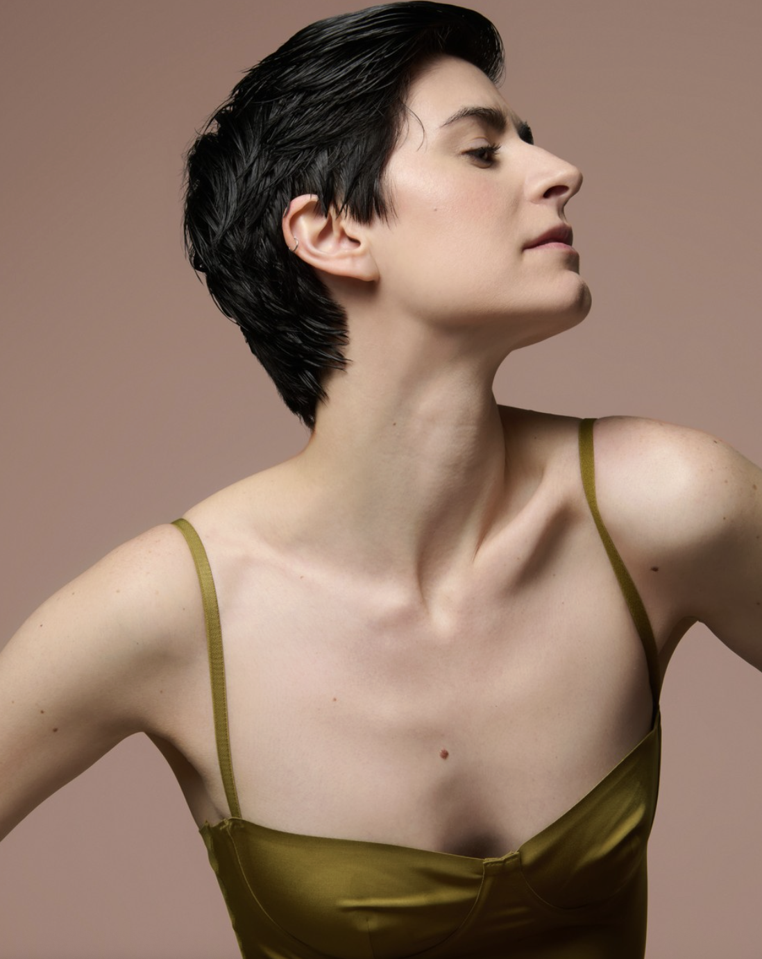 Height 5'10" / Dress 2–4 / Bust 31" / Waist 26" / Hip 36.5" / Shoe 9 / Tattoos Forearm / Piercings L2 / R3