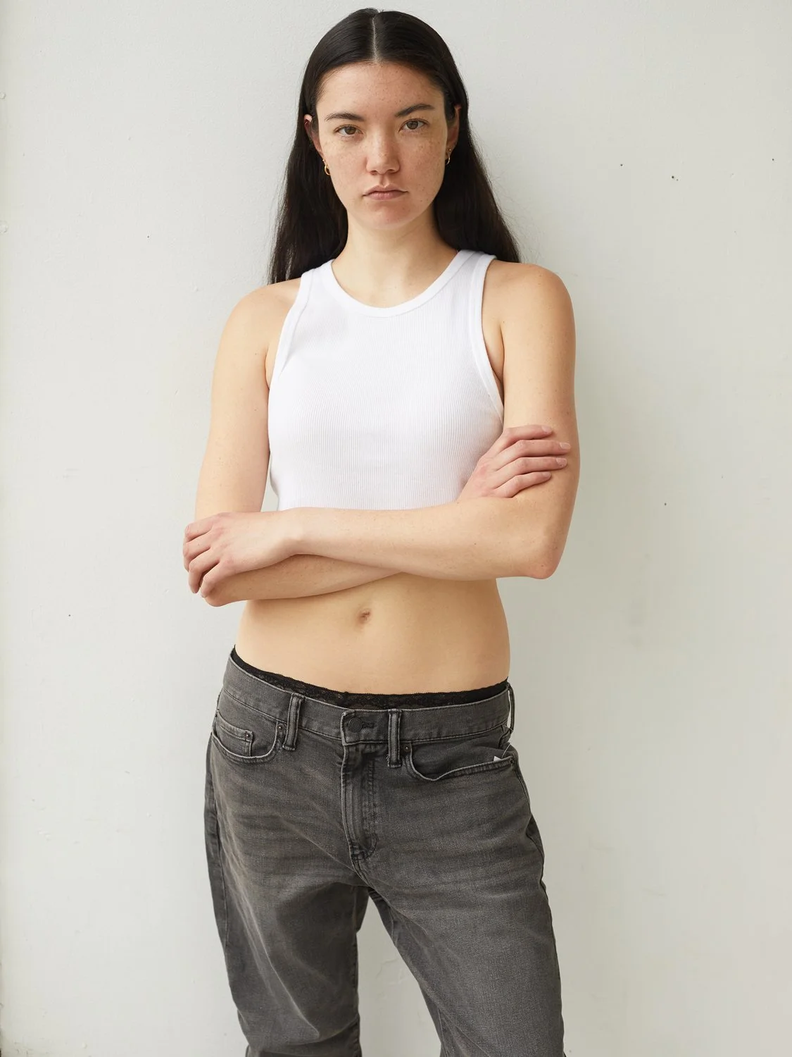 Height 5'10" / Bust 33" / Waist 24.5" / Hip 33" / Shoe 10.5 US / Wrist 5.75" / Ring 6 / Piercings L4 R5