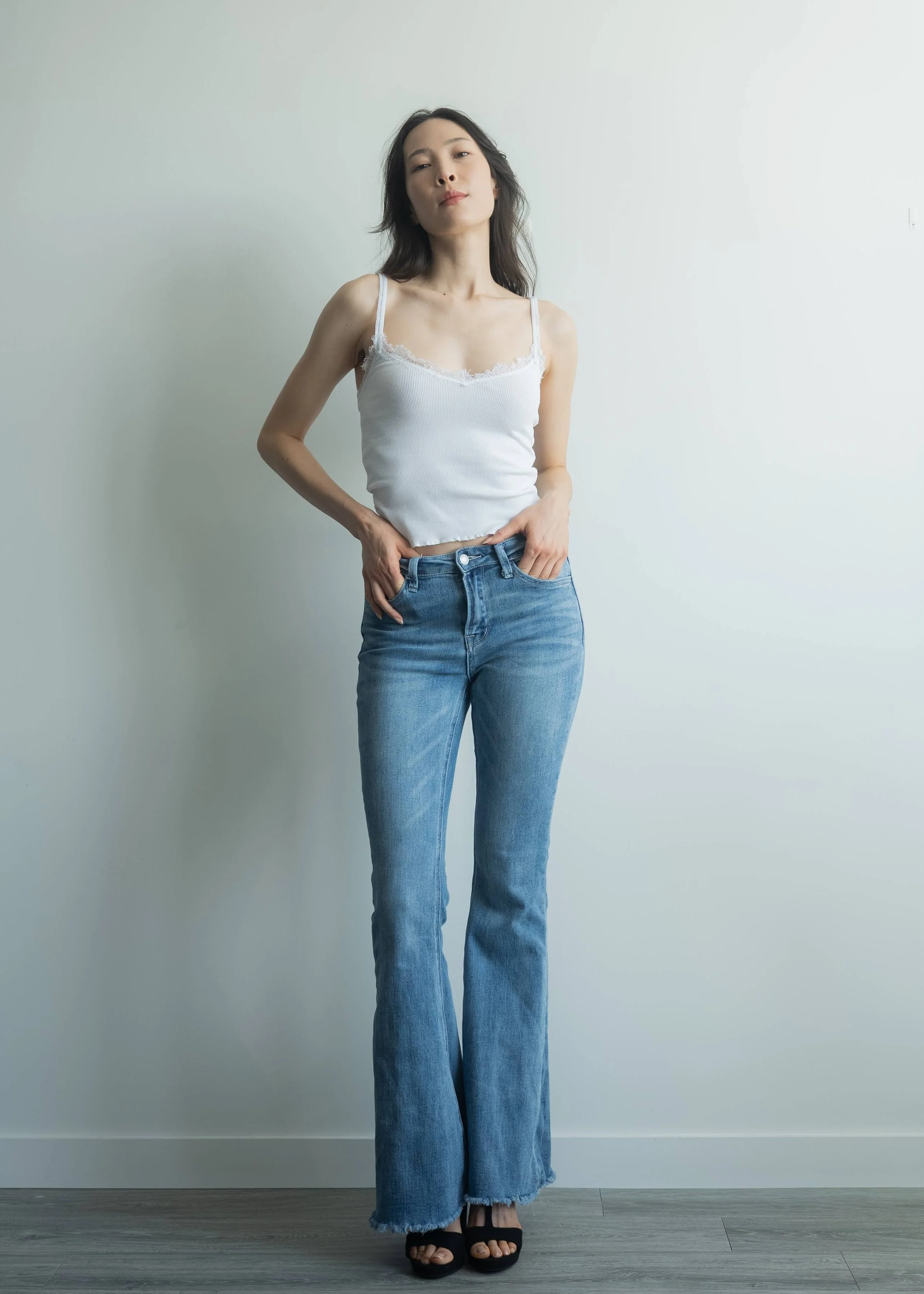 Height 5'10" / Dress 2 / Bust 33" / Waist 24" / Hip 35" / Shoe 8 / Glove 7 / Ring 6 / Piercings L4 R2